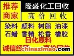 公司是一家“资金雄厚,讲求信誉”的化工物资回收团队。我们以信誉,诚实守信, 以速度求发展”,良好的职业道德赢得客户的信赖,并在同行业内获得良好的口碑。长期向全国各工厂、企业、等回收各种化工物资,并与很多单位建立了长期稳定的合作关系。 服务宗旨 诚信为本,服务至上,用心服务! 长期、大量、回收化工原料、油墨原料、树脂原料、塑料原料、橡胶原料、日化原料、原料、洗衣粉原料、洗衣液原料、油漆原料、洗涤原料、电镀原料、涂料原料,皮革原料、食品原料、染料回收、颜料回收、油墨回收、油漆回收,树脂回收,化工助剂等。 回收油漆涂料类(粉末涂料、防水涂料、防火涂料、乳胶漆、沥青漆、氟碳漆、uv油漆、汽车漆、船舶漆、木器漆、环氧漆、醇酸漆、漆、塑胶漆、金属漆、防锈漆、防腐漆、防污漆、聚酯漆、家具漆、标线漆、彩钢板漆、丙烯酸漆、聚氨酯漆、聚氨酯面漆、氯化橡胶漆、氯化橡胶面漆、玻璃鳞片灰漆、阿克苏油漆、佐敦油漆、老人牌油漆